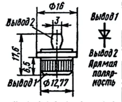 У диодов прямой полярности анодом является корпус (маркируется красной риской), обратной полярности — жесткий или гибкий вывод (маркируется черной риской).
