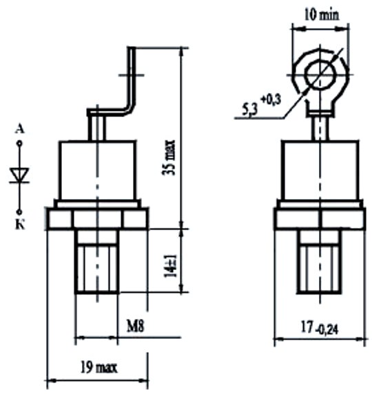Предназначен для работы в цепях статических преобразователей электроэнергии постоянного и переменного токов на частотах до 1,5 кГц.