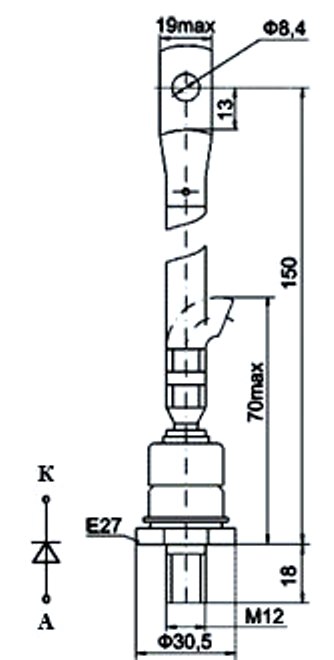 Предназначен для работы в цепях статических преобразователей электроэнергии постоянного и переменного токов на частотах до 2 кГц.