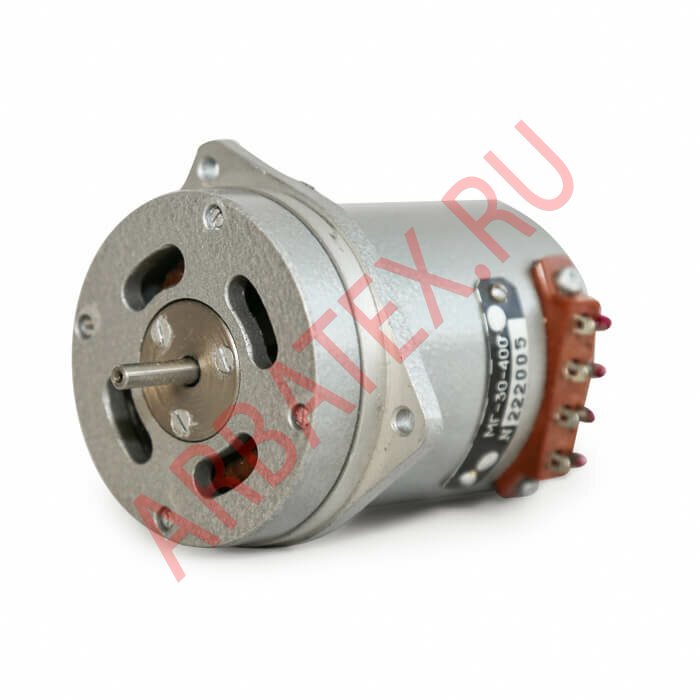 Электродвигатель МГ-30-400А характеризуется номинальной мощностью 30 Вт, напряжением питания 115 В, частотой вращения 12000 об/мин, а также частотой питающей сети 400 Гц.