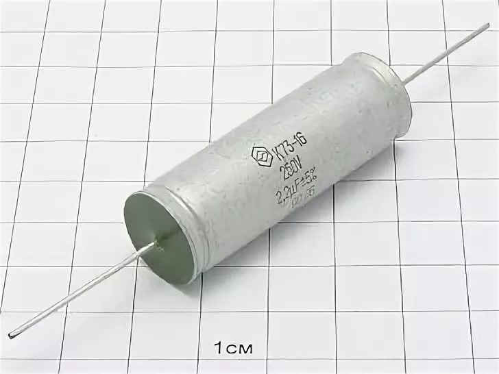 К73-16 250В 2.2 мкф конденсатор постоянной емкости полиэтилентерефталатный (лавсановый, майларовый) металлизированный. Предназначен для работы в цепях постоянного, переменного, пульсирующего токов и в импульсных режимах. Характеризуются высоким сопротивлением изоляции и высокой температурной стабильностью параметров. Конструкция: алюминиевый корпус, разнонаправленные (аксиальные) выводы.