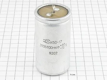 К50-17 350в 800 мкф конденсатор оксидно-электролитический постоянной ёмкости в алюминиевом цилиндрическом корпусе (изолированном или неизолированном) с заливкой торца компаундом.