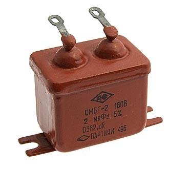 ОМБГ-2 160В 2мкФ конденсатор металлобумажный высоковольтный импульсный, выпускается в герметичном прямоугольном корпусе с лепестковыми выводами, предназначен для работы в цепях постоянного, переменного и пульсирующего токов, конденсатор относится к разделу пассивных электронных компонентов.