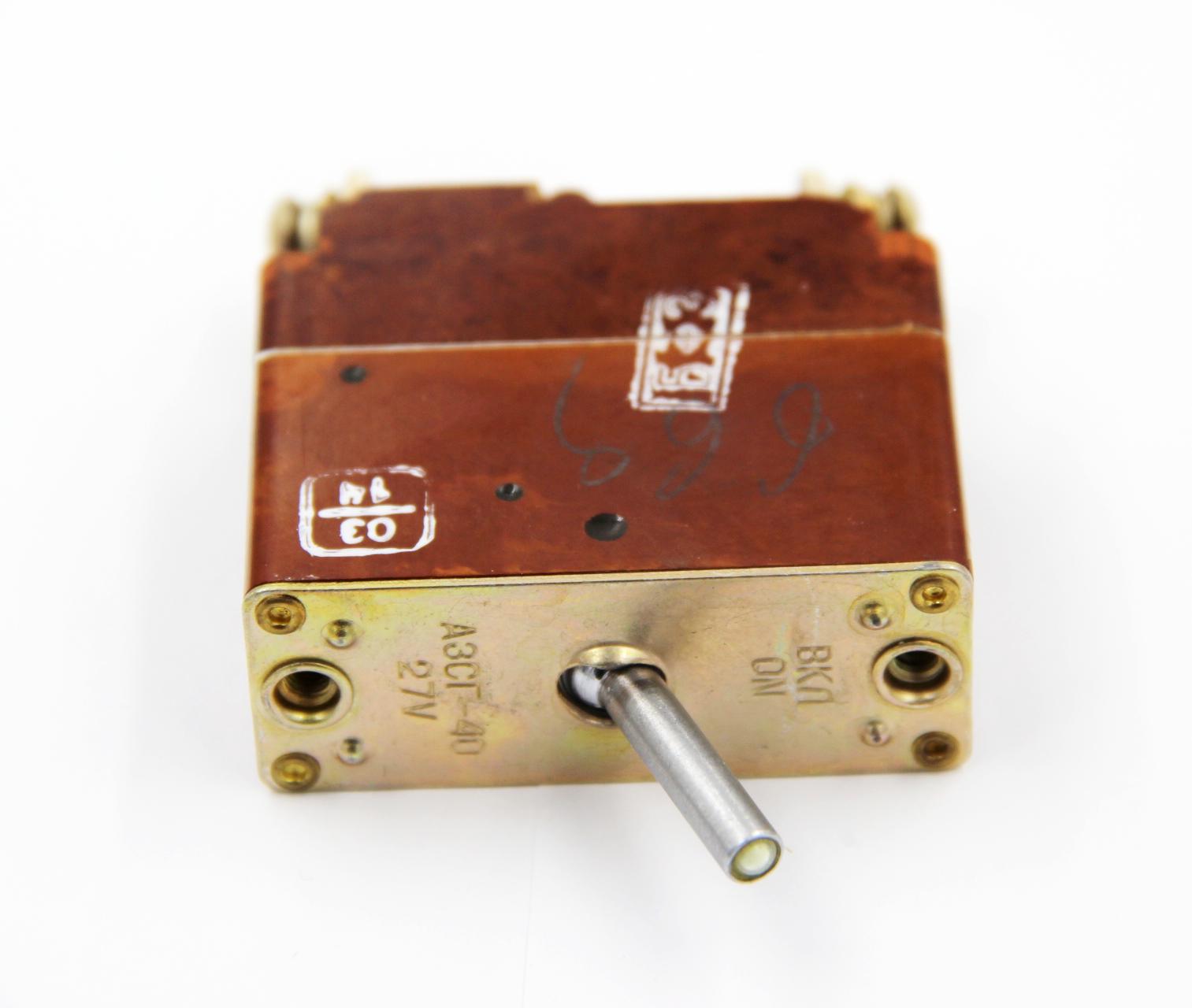Автомат защиты сети АЗСГ-40 предназначен для защиты электросети самолетных электросистем от токов опасных перегрузок и коротких замыканий при установке в кабинах с обычным освещением.