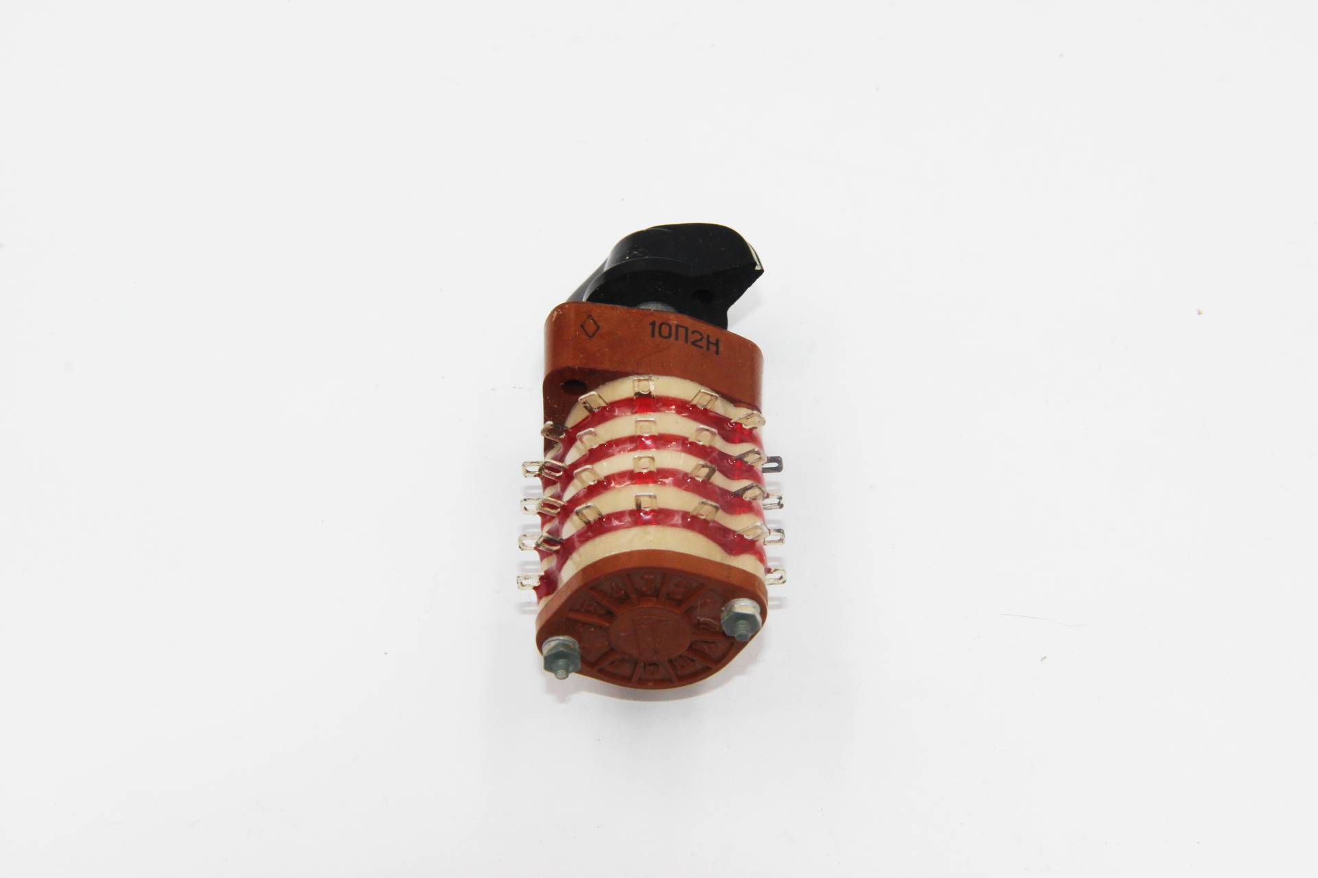 П2Г3-10П2Н переключатель галетный высокочастотный гетинаксо-карболитовый, поворотный роторного типа,применяется для коммутации цепей постоянного и переменного тока в радиоэлектронной аппаратуре. Переключатели крепятся путем фиксации оси в отверстии панели с помощью резьбы оси и гайки переключателя.