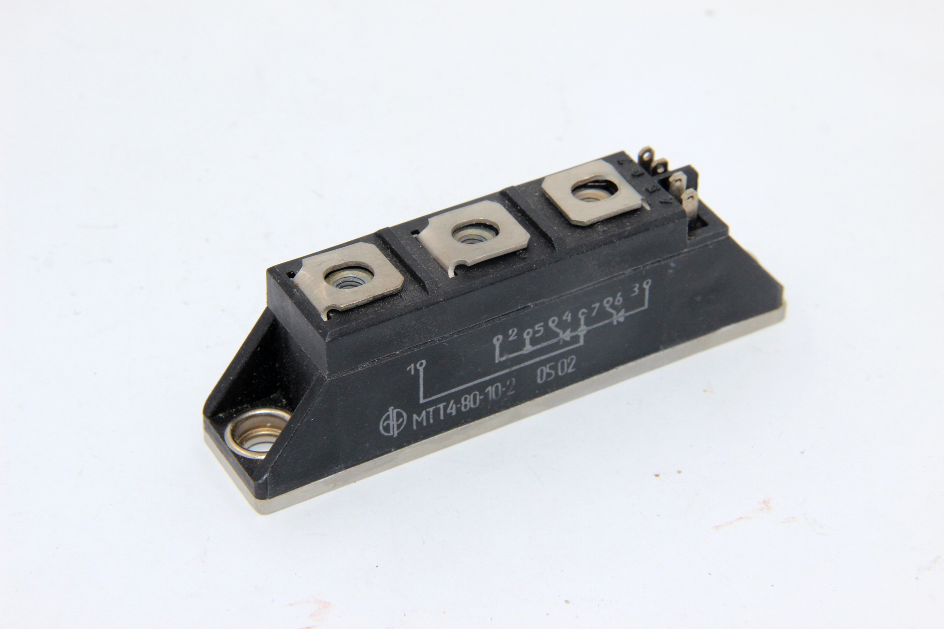 Модуль МТТ4-80-10-2 тиристорный силовой полупроводниковый низкочастотный состоящий из двух последовательно соединенных кремниевых диффузионных p-n-p-n тиристоров, включённых по полумостовой схеме