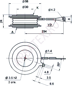 ТБ200-9 - быстродействующий тиристор таблеточного исполнения.
